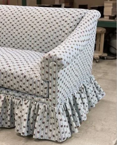 Beautiful sofa with rushed skirt from a O.Henry House upholstery
